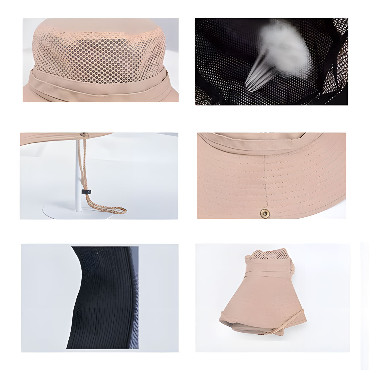Disponible en varios colores como negro, gris oscuro, gris claro, beige, verde militar y azul oscuro, puedes elegir el que mejor se adapte a tu look y necesidades. Con este sombrero, tendrás un accesorio funcional y versátil que te acompañará en todas tus aventuras.